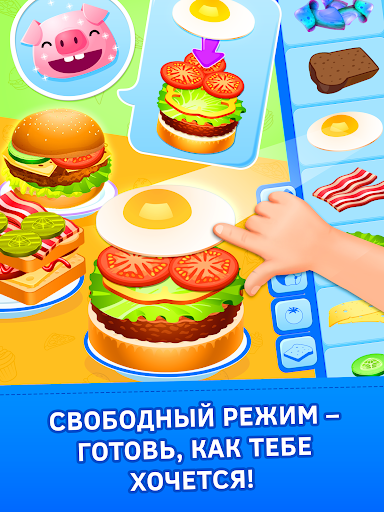 Надевай фартук и колпак – давай готовить гамбургеры! Перетягивай ингредиенты из холодильника, чтобы приготовить свое идеальное блюдо. На этой кухне продукты никогда не заканчиваются и ингредиенты доставляются с лучшего фермерского рынка, чтобы у вас был полный ассортимент и неограниченные возможности! Совершенствуй свои кулинарные игры и ресторан, изучай новые рецепты и стань самым успешным шеф-поваром!