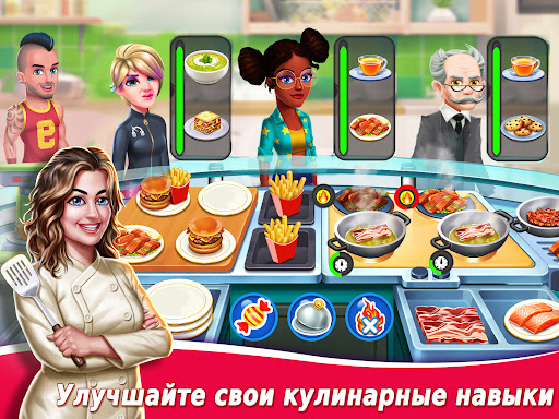 Расширьте свой кулинарный горизонт, работая с лучшими поварами мира. Улучшайте свои навыки готовки и участвуйте в кухонных битвах.