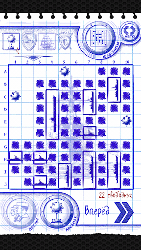 Классическая игра Морской бой. Играли на уроках? Вспомните детство, играйте в морской бой на Вашем Андроиде! Расставляйте свои корабли и топите противника.