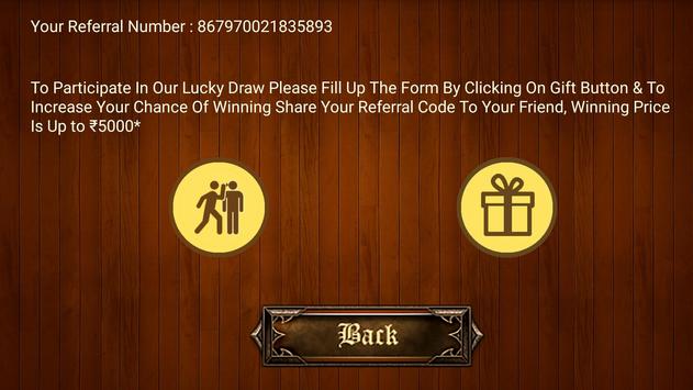 for that you just need to participate in our lucky draw by installing the game on your device after that click on options menu now click on gift icon and you get one referral number now fill up one form by clicking on another gift icon in that panel.
