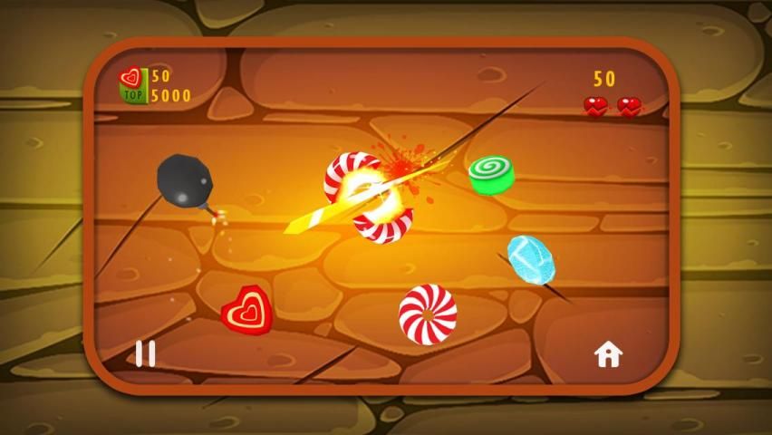 Получите бонус за комбо нарезка несколько конфет в одной салфетки. Следите за бомбы для нарезки их приведет к казни. В режиме Easy весело нарезки конфеты, не беспокоясь о пропавших без вести их, и попытаться забить максимум с отведенного времени. В жестком режиме нет ограничений по времени, но каждый промах будет стоить штраф и получить 3 промаха и его игра окончена. Бомбы также следует избегать.