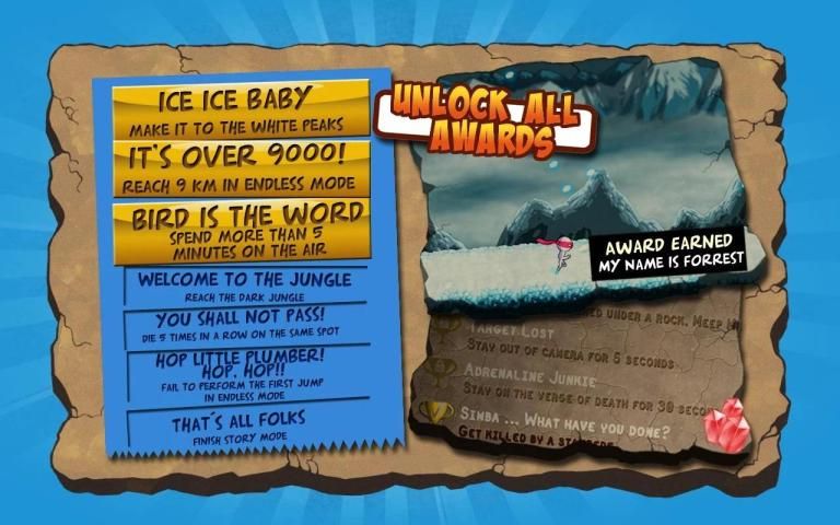 * Touchscreen gestures: Jump, Kick, Dash, Slide ... combine them in creative ways!