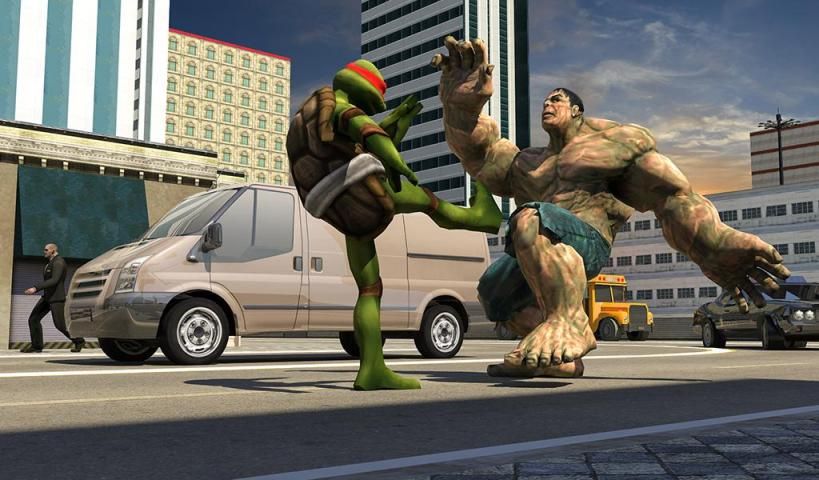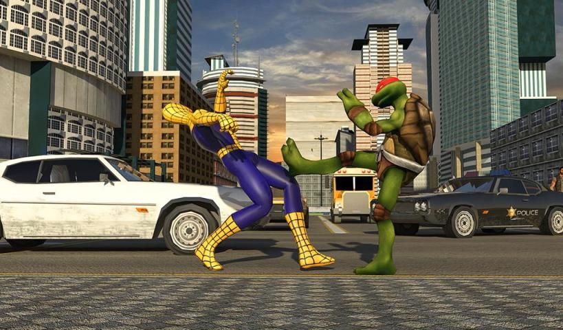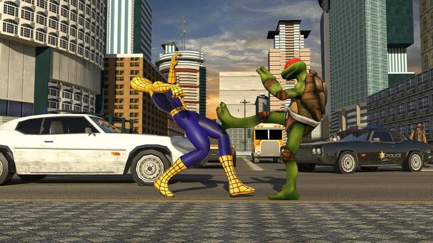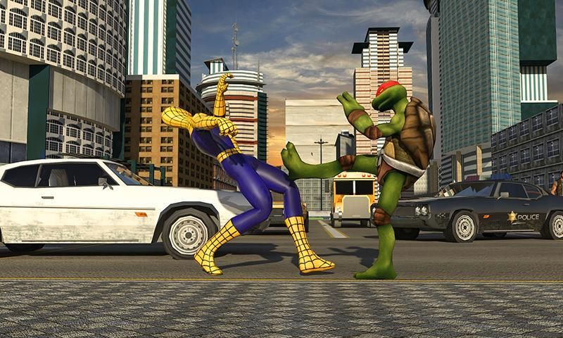 Вы (воитель-черепаха ниндзя) сразитесь с лучшими комиксами-супергероями мира, такими как Человек с веревкой, Невероятный супергерой, супер магия паука, супер-девочка и супергерой капитана, и вы должны победить их, чтобы получить доступ к следующему уровню. У всех у них невероятные суперспособности бить вас, но вы должны использовать всю свою ниндзя-тень, тхэквондо, мауи-тай, бокс и другие боевые навыки. О, я должен сказать вам эти возбужденные вещи ДЕЙСТВИТЕЛЬНО!