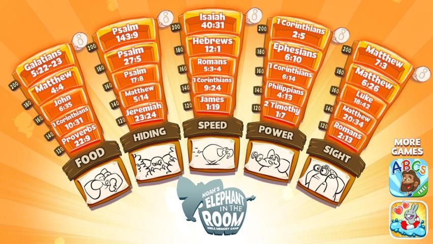 Регистрация Ной, его сыновья, и кучу ковчега животных, как вы узнаете 25 библейских стихов из Ветхого и Нового Завета! Каждый стих проходит через 5 этапов возрастающей сложности позволяет игроку обрабатывать и хранить каждый стих в долговременной памяти.