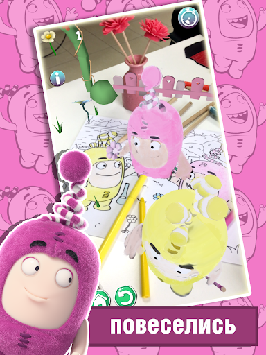 - Раскрашивайте персонажей Oddbods и оживляйте их прямо на экране вашего устройства такими, какими вы их раскрасили