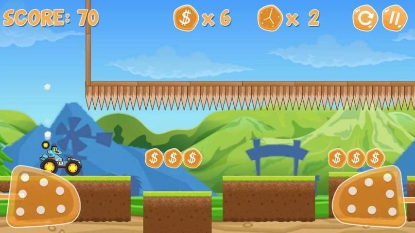 автомобиль Control Oggy или велосипед, чтобы подняться с контролем, чтобы противостоять вызовам уникальных подъемов и спусков сред. Получите бонусы от трюков и собирать монеты, чтобы разблокировать другой характер, как тараканы, собачки и автомобиль, когда вы достигнете еще более высокого балла. Лучшая игра для маленьких поклонников смешных Oggy.