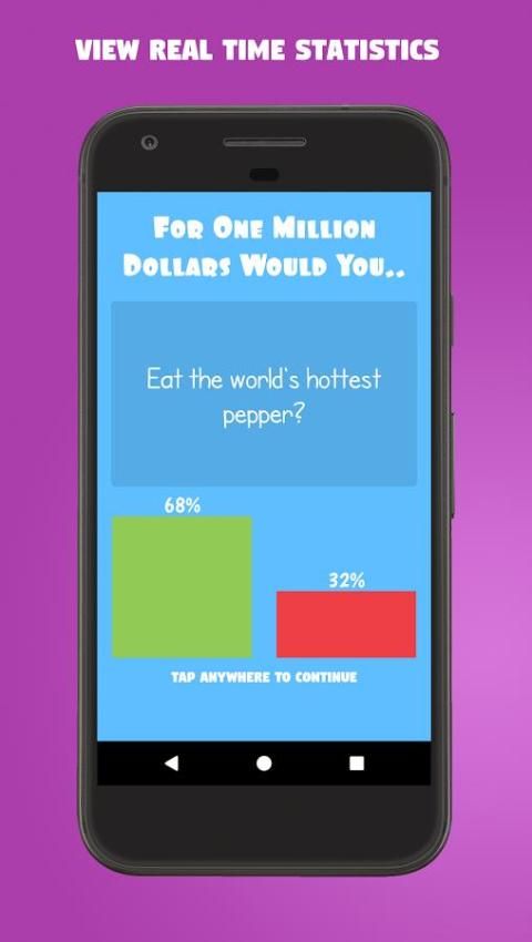 Эта игра содержит сотни увлекательных и сложных вопросов. Голосуй Да или Нет на каждый вопрос и просмотреть статистические данные о том, как голосовали другие игроки.