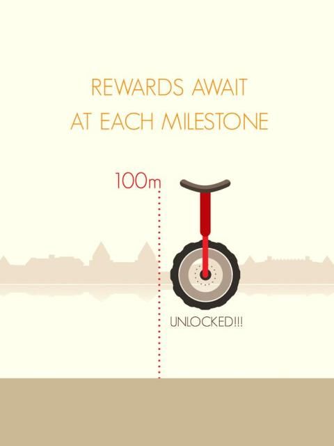 Поощряйте себя, разбудив более удивительным unicycles каждый раз вы достигнете определенных этапов!