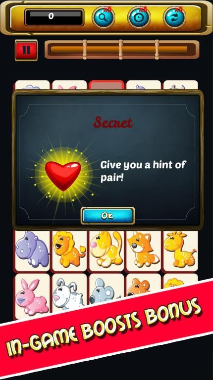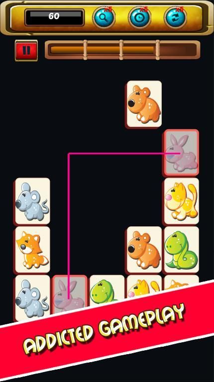 Onet Animals геймплей легко, просто подключить пару карты в течение 3-х линий.