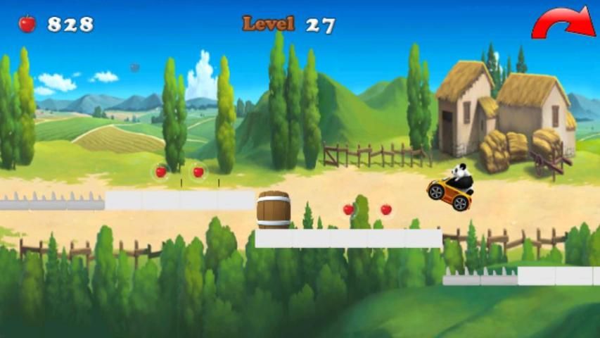 Panda автомобилей Приключения нужно собрать вишни от бега и прыжков.