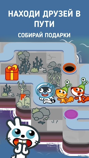 По пути заводите друзей и собирайте подарки, которые пополнят коллекцию костюмов Pango!