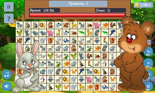Логическая игра для детей и взрослых. Необходимо найти одинаковые картинки с забавными зверятами, которые можно соединить линией, имеющей не более двух изгибов!
