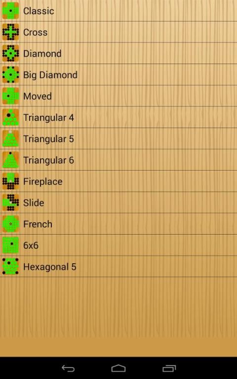 This is an implementation of the classic Peg Solitaire game for Android phones. Main features: - Play the classic game as well as many variations - Square, Square with diagonal moves and triangular boards supported - Select one out of 3 different themes - Create and play your own boards - Machine search for a solution. Works both for built-in and custom boards. It may be slow for big boards.