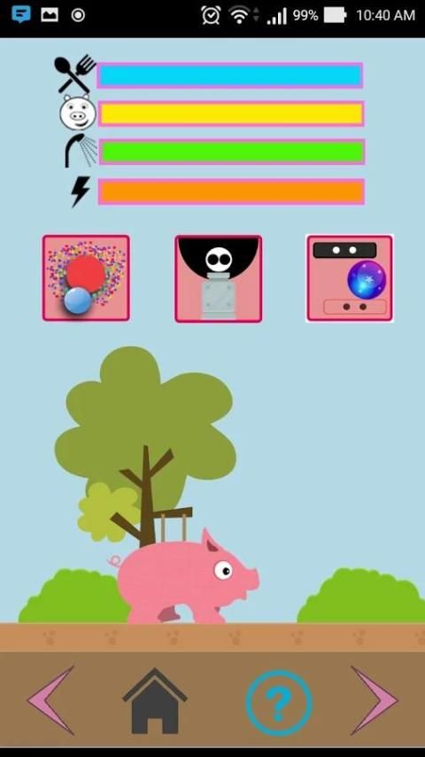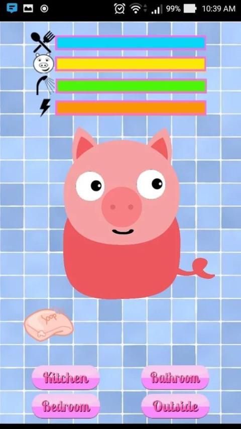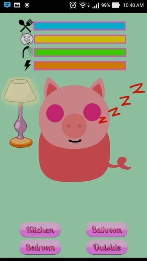 Вы будете адаптировать животное, где вы должны заботиться о нем. Вы должны сделать это надлежащим образом, так что woudnt устать. Вы можете взаимодействовать с ним с помощью кормления, мытья, сделать его спать и выходить на улицу. На внешнем мире, есть 3 мини-игр, которые увеличат счастье свиньи.