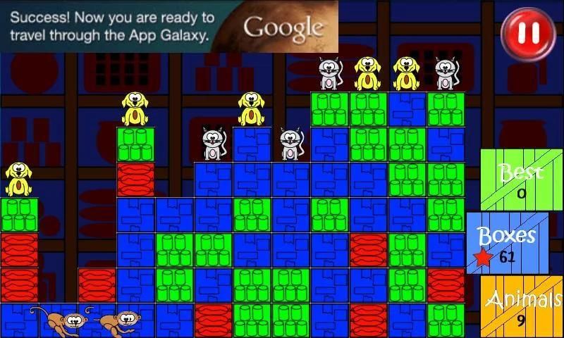 Домашние животные убежали из магазина спасти животных, получая их. Животных разразился в зоомагазин и работать в магазин комнату. Вы можете спасти их, удаляя коробки они сидели на, чтобы они могли получить обратно. Его простая игра, где вы щелкнули соответствующие флажки, чтобы удалить их и спасти животных. Чтобы победить, вам нужно, чтобы все животные вниз, некоторые должны быть ниже, чем другие. Чтобы получить лучший результат вы будете продолжать удалить коробках, пока нет ни левые, или вы не можете удалить все больше. Есть 3 уровня, чтобы играть. Самый простой идеально подходит для детей, средней для старших детей и взрослых, и трудно на самом деле определяется. Советы - * Чтобы получить лучший результат вы должны получить все животные вниз * Как только животные вниз продолжать удалять поля и улучшить ваш счет * Количество коробок оставили под каждое животное прежде чем он сможет перейти на пол - Попугай 4 Обезьяна 3 Дог 2 Cat 2 Кролик 1 Змея 0 * Планируйте заранее подключить один коробки * Следите за высшее коробки становятся изолированными при удалении нижних ящиков * Планируйте заранее выстроить ящиков, когда столбец удаляется * На жестком сконцентрироваться на животных вниз