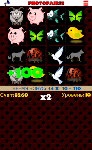 Удачи в пар картинок, вы должны сформировать все пары до времени иссякнут, чтобы перейти на следующий уровень, если способы пары следуют оценка будет увеличиваться, и если у вас есть время, чтобы стать очка.