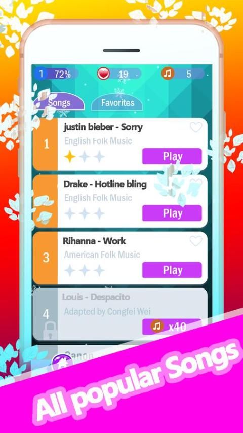 5.You может добавлять песни в вашем любимом, играть как классическую, так и поп-музыку, чтобы обогатить свой игровой опыт.