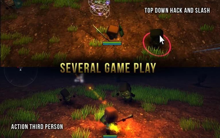 Pixel Dungeon Истребитель войны 3D входит с большим количеством функций и несколько игр стиля игры, такие как третье лицо Action RPG, нисходящий RPG рубить и слэш, Adventure Кооператив.