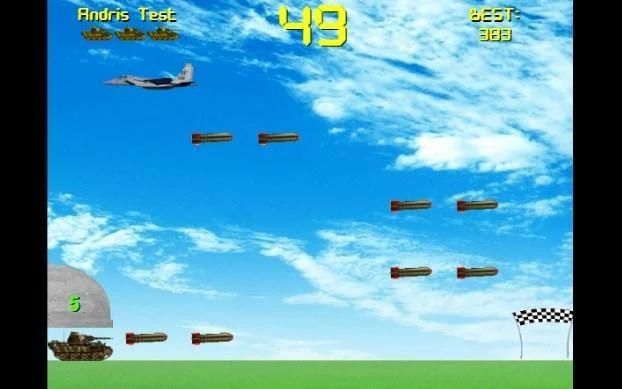 Your goal is to take the tank and cross the finish line when possible and avoid falling bombs of the plane.