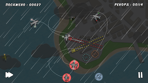 ✈️ Для того, чтобы отправить самолет на посадку нужно просто нарисовать пальцем на экране полосу от самолета к его взлетно-посадочной полосе (красный самолет на красную полосу, зеленый на зеленую, вертолеты - на бирюзовую посадочную площадку). Таким образом ты определишь траекторию/ путь, по которому каждый самолет пойдет на посадку.