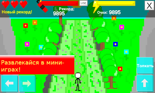 Здесь ты будешь играть за пиксельного человека, который хочет остановить дракона. Ты будешь проходить уровни, прокачивать героя, сражаться с боссами и многое другое!