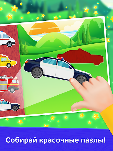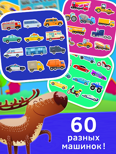 - Пять красочных тем с 60 разнообразными машинками и разные игры про машины;