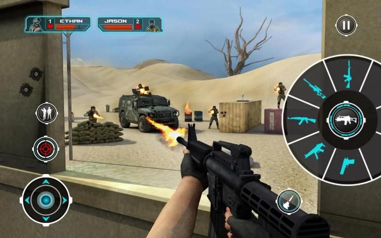 Fire pistol, sniper gun, or any assault rifle like AK47 OR MP5
