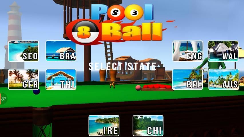 это удивительный 3D игра бассейн с окружающей средой пляжа. Выберите тип игры вы хотите играть. есть снукер, 8 Ball и 9 режимов мяч.