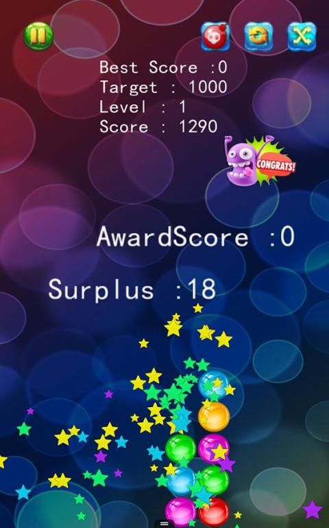 * Чем больше пузырьков вы избавляете и тем меньше пузырьков вы оставить на экране, тем выше ваш счет!