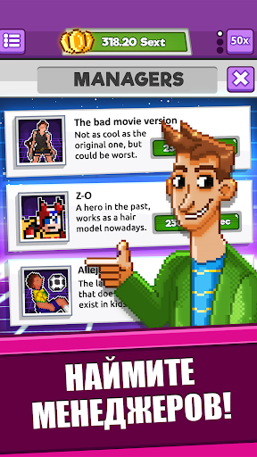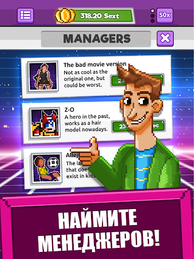 🕹️НАНЯТЬ менеджеров, чтобы с их помощью получить больше ресурсов, которые будут способствовать вашему продвижению в этом ностальгическом путешествии!
