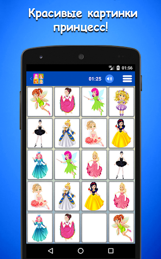 Игра для памяти с принцессами является одной из самых масштабных разработок в сфере развития интеллекта и визуальной памяти. Сопоставляйте сотни картинок, развивайте свой интеллект и улучшайте память. Это классическая настольная игра нашего детства. Игра состоит из двух режимов :