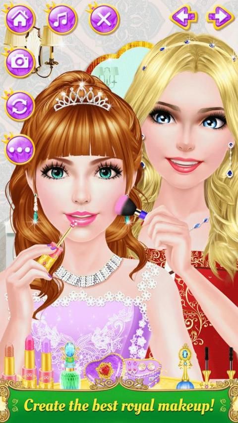 Теперь пришло время для макияжа салона. Попробуйте на много различных взглядов. Вы можете соответствовать королевской сестры или дать им свои собственные взгляды. Наносить румяна, тени для век и тушь для ресниц. Играть с различными цветами помады. Будете ли вы пойти на естественный вид или полностью глэм? Выбор остается за вами!