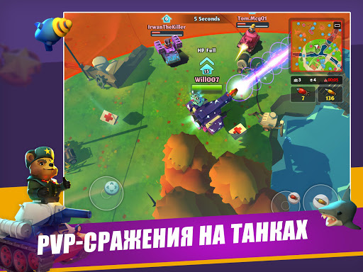 Выберите питомца, посадите его в прокачанный танк и станьте участником онлайн PvP-схватки. ⭐️ Соревнуйтесь с 20 игроками в быстрых трехминутных PvP-сражениях. ⭐️ Разблокируйте и прокачивайте новые танки с уникальным набором скиллов. ⭐️ Станьте лучшим и займите первую строчку мирового лидерборда!