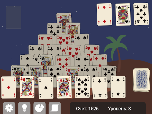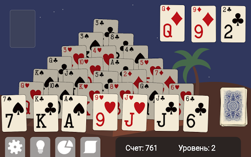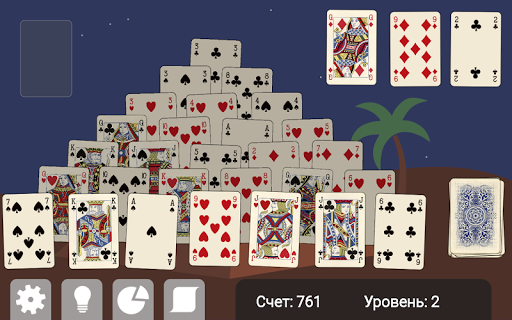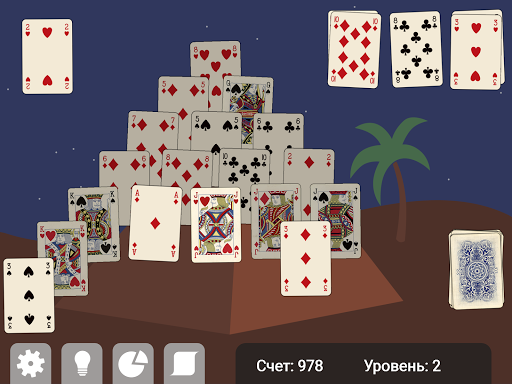 28 карт расположены в форме пирамиды, остальные оставлены в колоде и могут быть нарисованы по три за раз. Маркировка двух непокрытых карт с суммой 13 удаляет их с доски. Валы имеют значение 11, а королевы - 12. Короли могут свободно удаляться. Цель игры - очистить всю пирамиду как можно быстрее.