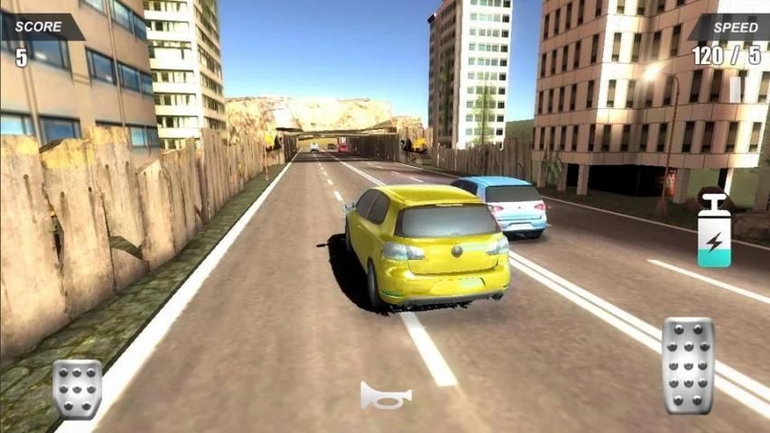 Гравитация работа датчика: влево и вправо, чтобы избежать препятствий или автомобилей. Нажмите кнопку тормоза, чтобы замедлить, быстро гонки на городской дороге, чтобы избежать более, тем больше очков.