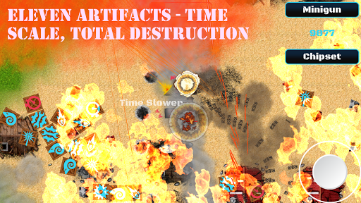 - 11 артефактов. После уничтожения каждой части здания или вражеского робота будет создан новый артефакт. Это может быть как обычно - оружие или HP, но это может быть, например, медленнее времени! Просто попробуйте!