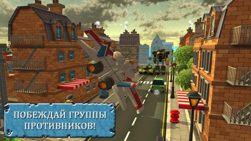 Уничтожайте роботов 1984 года, трансформируйтесь в самолёт и освободите город! Станьте героем своего времени.
