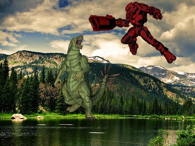 - Битва между роботом и монстра