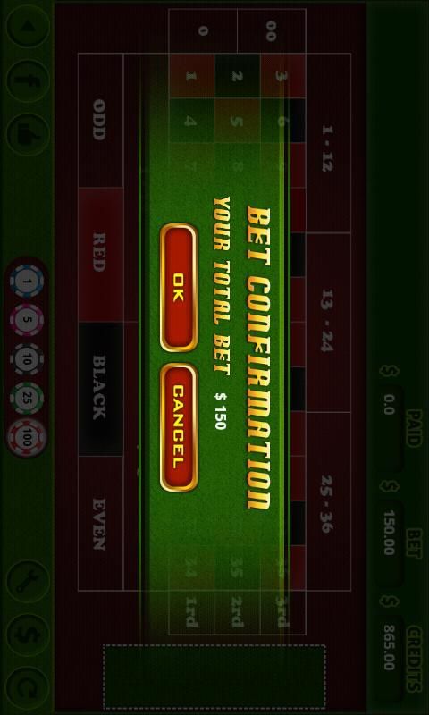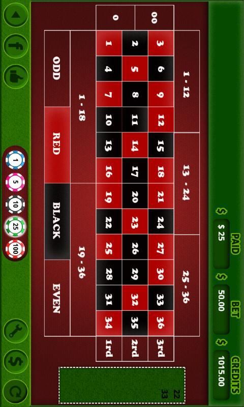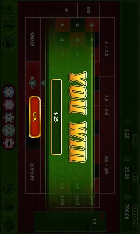 - 1, 5, 25, 50, 100 фишек и начальные кредит 500