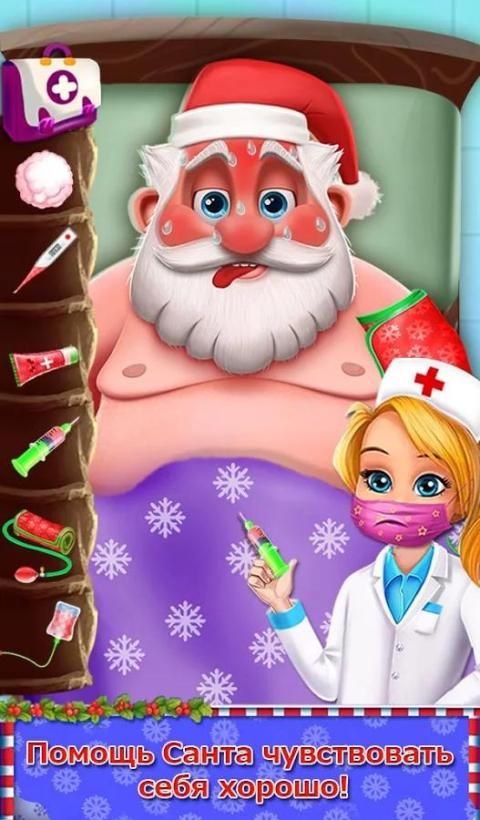 Рождество в ближайшее время. Наш Санта нуждается в вашей помощи, потому что он чувствует себя все хуже. Так что стать настоящим врачом и принять участие в игре Санта медицинский осмотр. В этой игре вы должны относиться к Санта пополнением тонн лечебных мероприятий, как Вытащите повреждения троны из организма, применять зонную помощь, применять антисептический крем с помощью ватного тампона, чтобы избежать кровотечения, проверить температуру с помощью термометра, используйте стетоскоп проверить сердцебиение, дать ему укол, дать лекарство или сироп для быстрого восстановления, проверьте его глаза, сканирование переломов костей с помощью рентгеновского сканера, применять бинты, чтобы исправить кости ног и многое другое. И, наконец, Санта будет счастлив, что все ее проблемы были решены. Эта игра будет держать ваши дети развлекали в течение нескольких часов. Играйте и наслаждайтесь этой обучающей игры и поделиться им со своими лучшими друзьями.