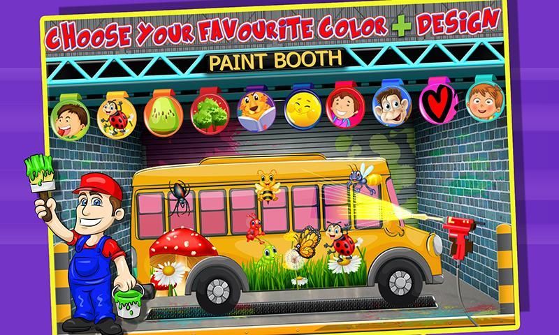 Дети получают школьный автобус каждый день в школу, но этот автобус сильно загрязнен и нуждается в хорошую стирке! Соберите свои инструменты и дать этой школьный автобус полный макияж. Начните с мытья, но затем дать ей новую работу краски и некоторые фантастические новое искусство, чтобы действительно удивить всех в школе.