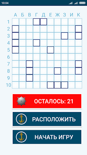 Для начала игры вам необходимо перейти на экран «Новая игра» и расположить ваши корабли на вашем игровом поле. Вы можете сделать это самостоятельно или нажать кнопку "Расположить автоматически".