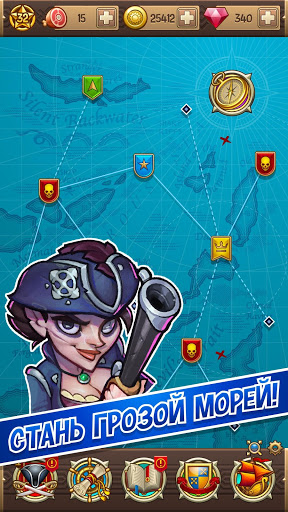 Мечтаешь стать настоящим капитаном? Начни с настоящей команды! Набери самых бесстрашных и отчаянных пиратов, чтобы господствовать на море. У каждого пирата свой характер, но и свои таланты. Воспитай своих героев от салаг до отчаянных морских волков и становись ещё более страшным и могущественным капитаном. Покори все моря!