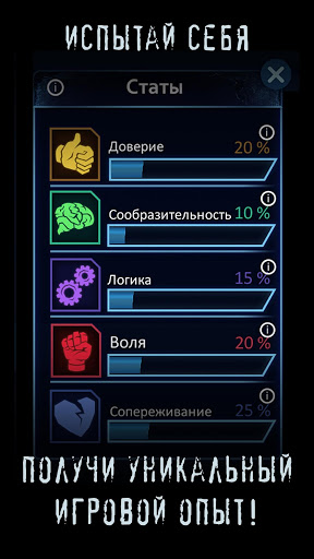 - Окажите влияние на развитие истории! Набирайте очки по пяти характеристикам.