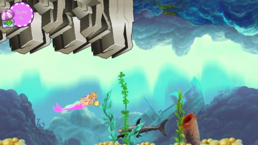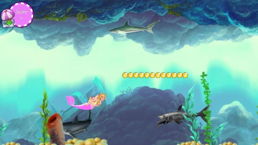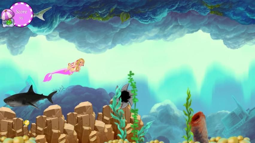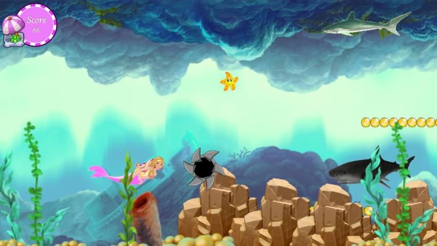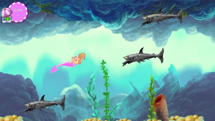 Симпатичные и прекрасный русалка избегает нападения акул. Пожалуйста, помогите красивой русалки. Постарайтесь, чтобы избежать нападения акул и собрать все подарки с русалки Barbie. Будьте осторожны, чтобы скорость игры увеличить каждым секунд.