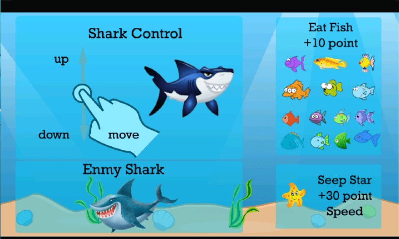 Shark Feeding Download the fish in front of you with the shark's stomach. The aim of the game is to feed the sharks. You should kill more fish and maximize your score before enmy sharks catch you. If enmy shark catch you, game is over. The game had a lot of fun with 50 different fish tried to serialize the chart. How is the game played? You can dragging screen to move up and down the Shark.