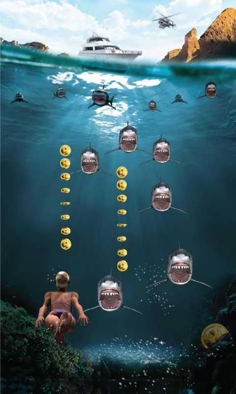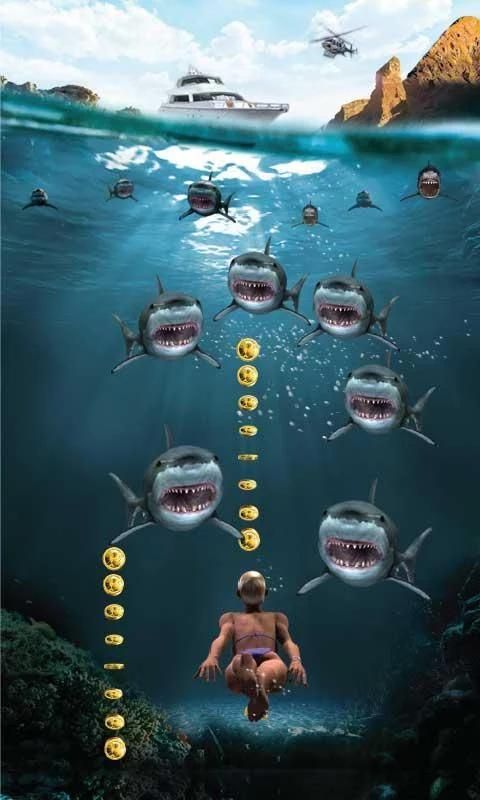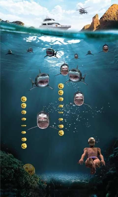 Вам не нужно много времени ... дайвингом так же быстро, как вы можете, чтобы избежать от нападения и выжить возможно! Сбор акул золотых монет и выжить подводные дайвингом.