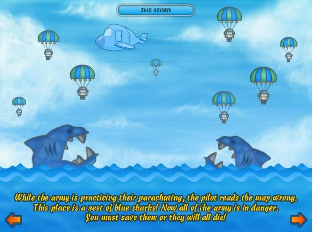 In this Shark Returns game, your mission is to save the parachuting army as fast as you could from the sharks before the people touch the waters. Tap them as fast as you can and also look out for the bonuses. Have fun!