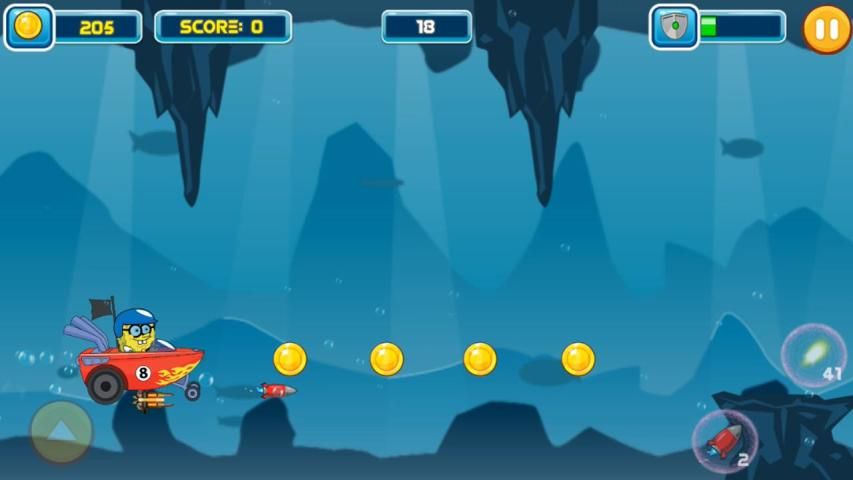 Spongebob путешествие в новую пещеру. Пещера содержит диких акул, бомбы и шахты. Акула против Spongebob Squarepant просто игра платформер. Для того, чтобы играть в эту игру, вы просто сделать лодка может летать в середине пещеры. Избегайте obstable или вы можете ракеты, чтобы уничтожить их. Поместите щит, это может сделать судно не может уничтожить.