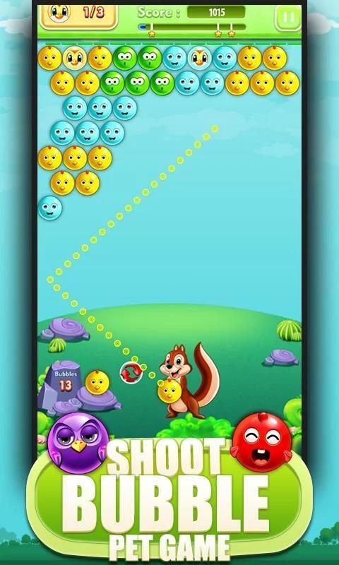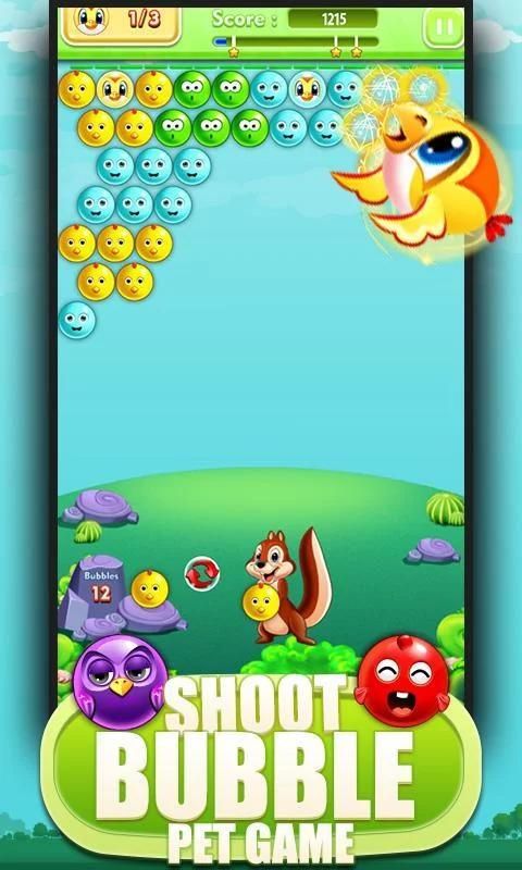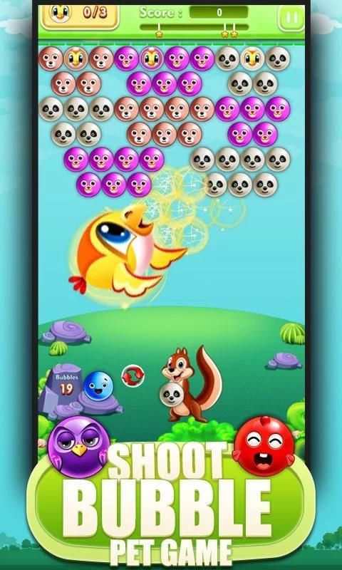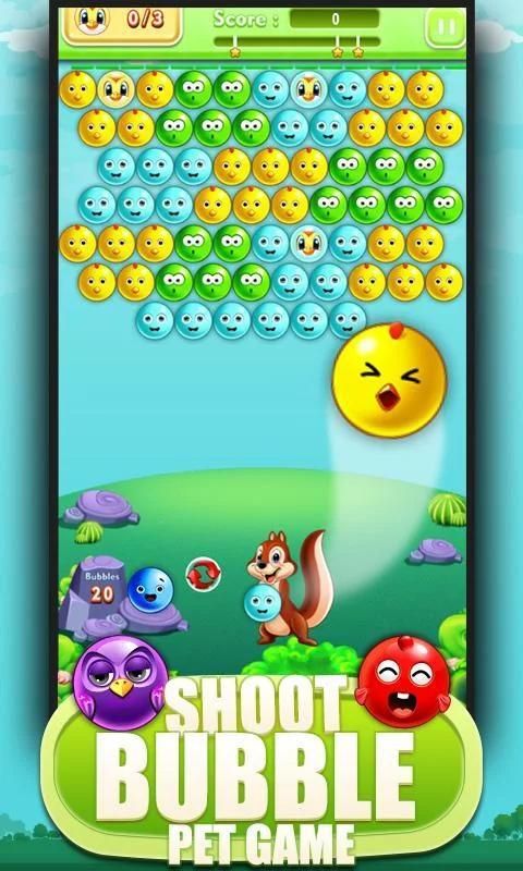 Shoot Bubble Pet Game обеспечивает лучшее моделирование домашнего животного как пузырь шутер. Графика, звук и музыка все делает наилучшее сочетание бесконечной игры пузырь съемки. Характер необходимо постоянно бросать пузыри и птиц одного и того же цвета, что требует очереди. ООН-похожи пузырьки накапливаются, и когда они делают пару с таким же пузырем, то третьим помогает лопнуть из пары или больше пузыря. Таким образом, это простой способ, который позволяет снимать пузыри и стать пузырь шутер.